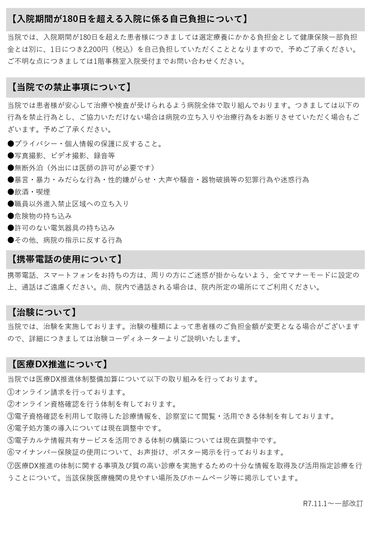 以下のことを患者様権利として尊重し、医療に生かすことを誓います。