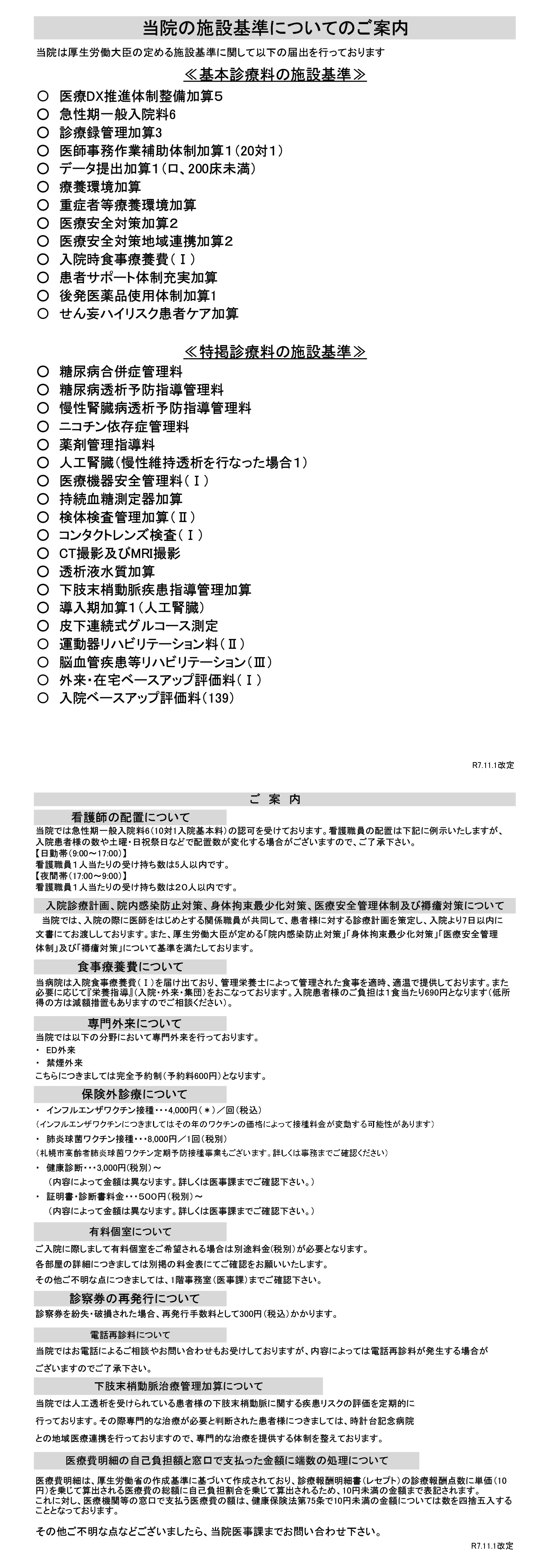 最新・最高の医療を提供するため1994年(平成6年)糖尿病センターを開設し、糖尿病内科をはじめ眼科、腎臓内科、血液透析センター、消化器内科、循環器内科、皮膚科診療を行っております。