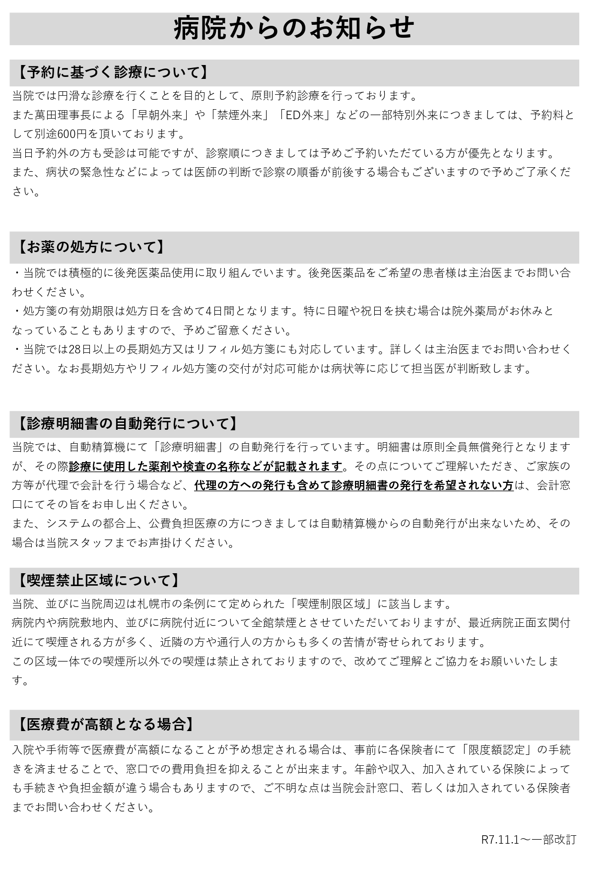 以下のことを患者様権利として尊重し、医療に生かすことを誓います。